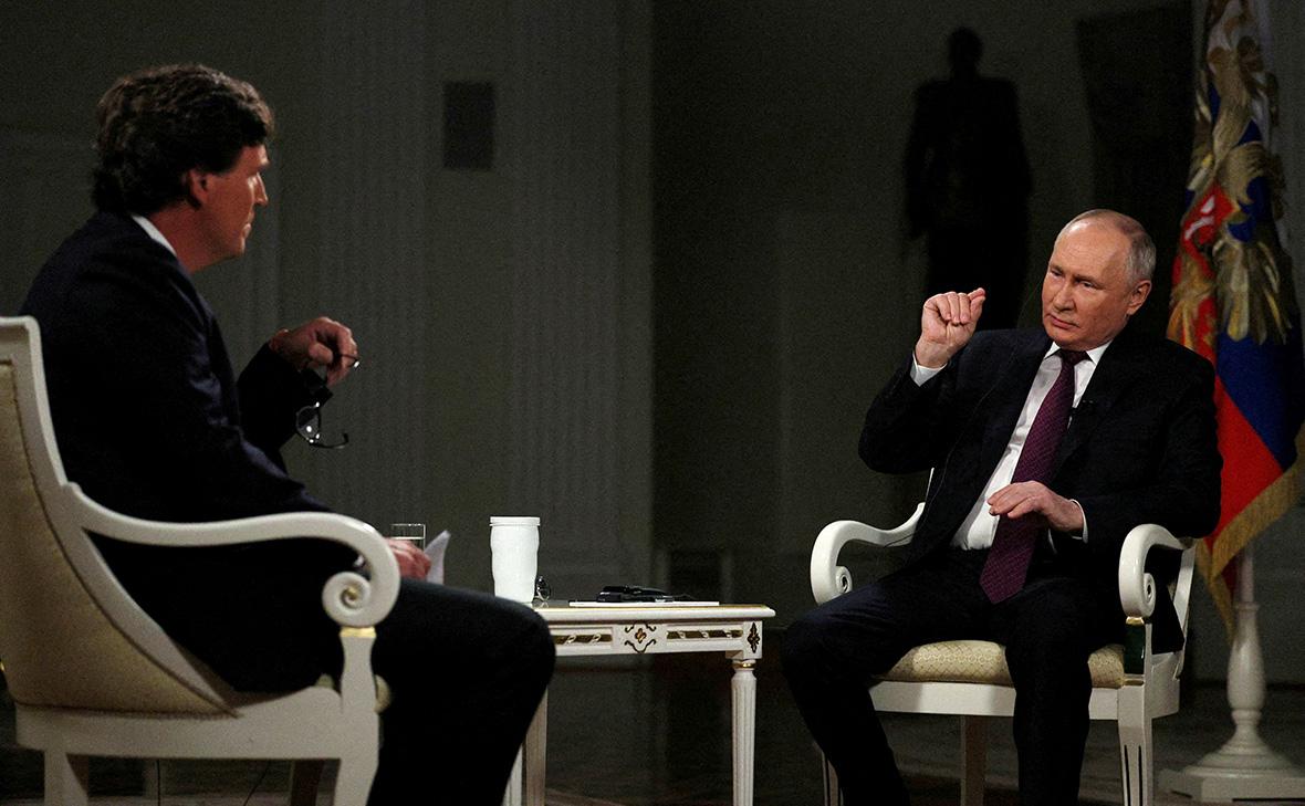 Карлсон зимой 2024 года приехал в Москву и взял интервью у Путина. Бóльшая часть двухчасовой беседы была посвящена военной операции на Украине. Кроме того, президент высказался об отношениях России с НАТО, взрыве на газопроводе «Северный поток», аресте в стране журналиста The Wall Street Journal Эвана Гершковича и на другие темы.